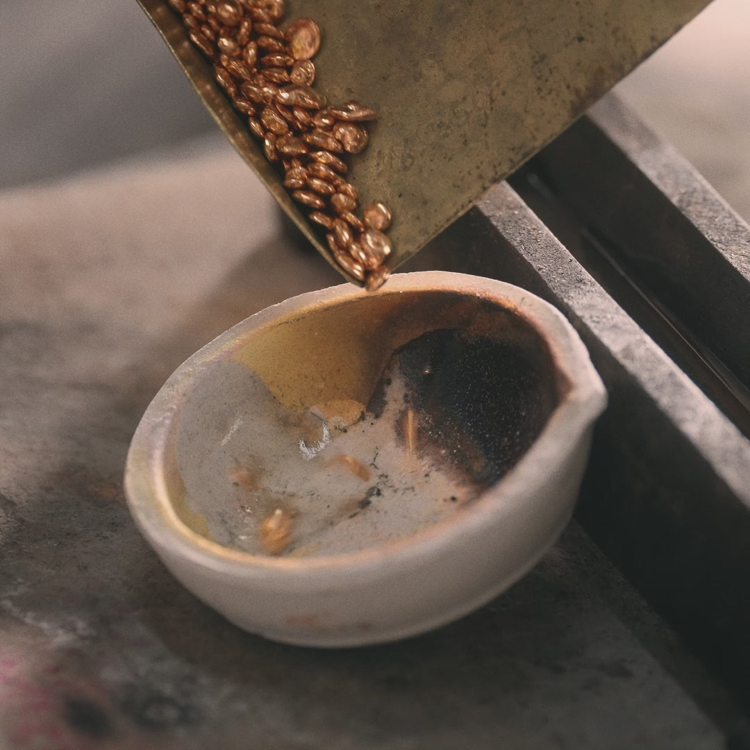 Hinweis: Seien Sie vorsichtig, um die Goldoberfläche nicht zu zerkratzen oder Edelsteine zu lösen. -