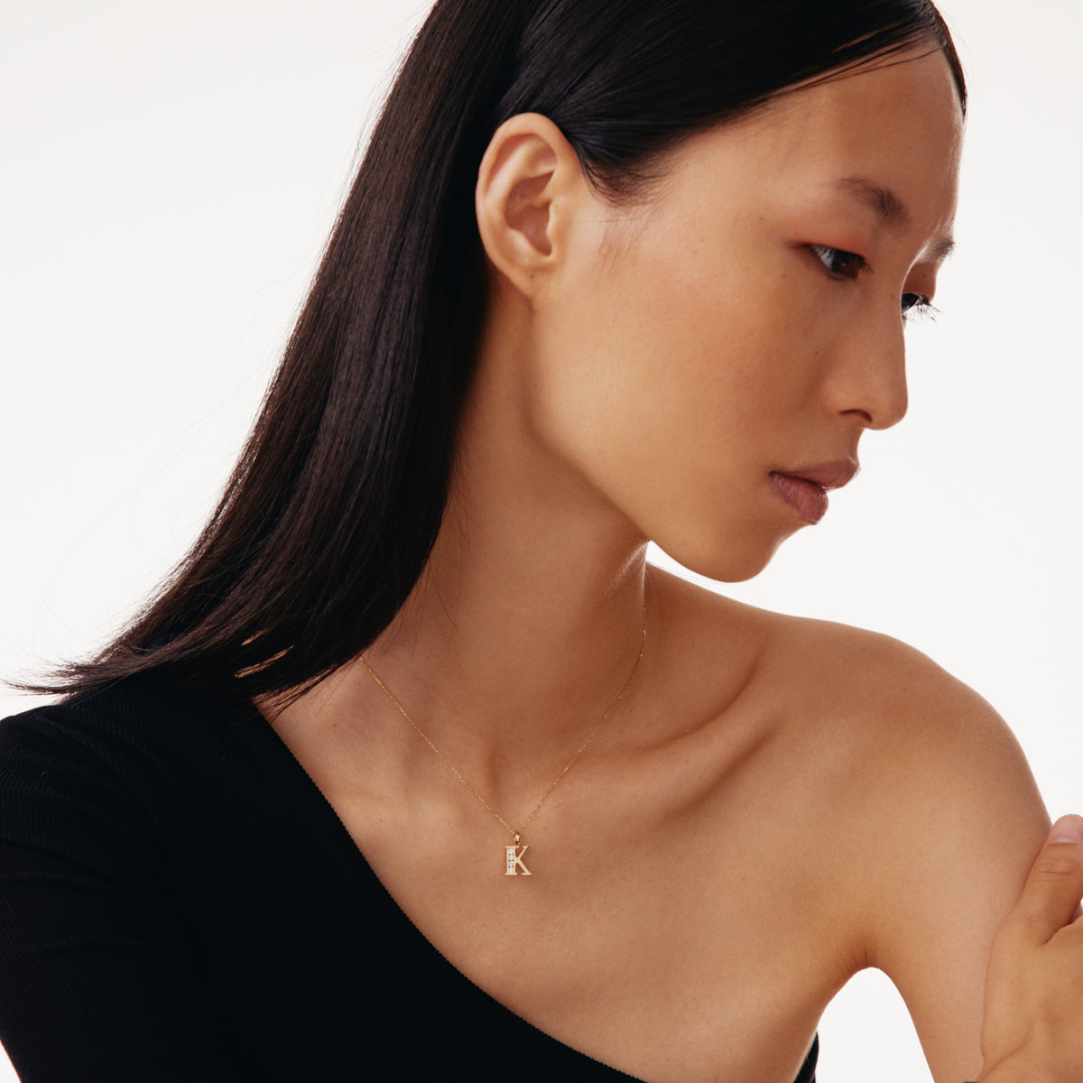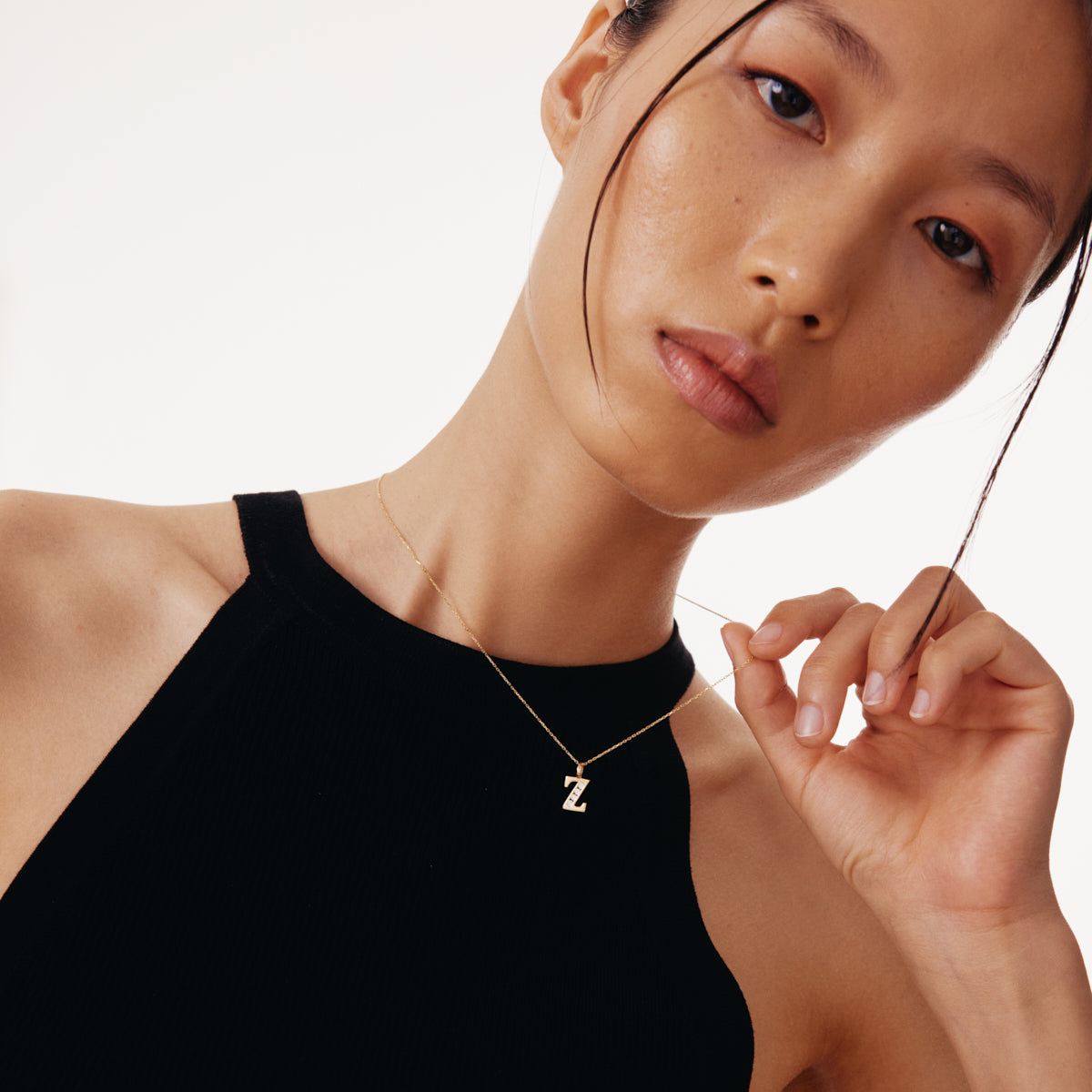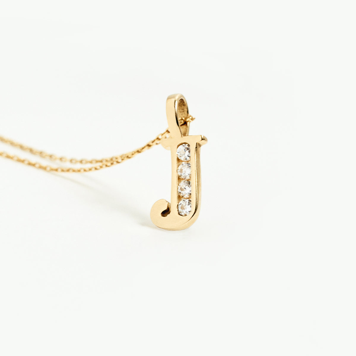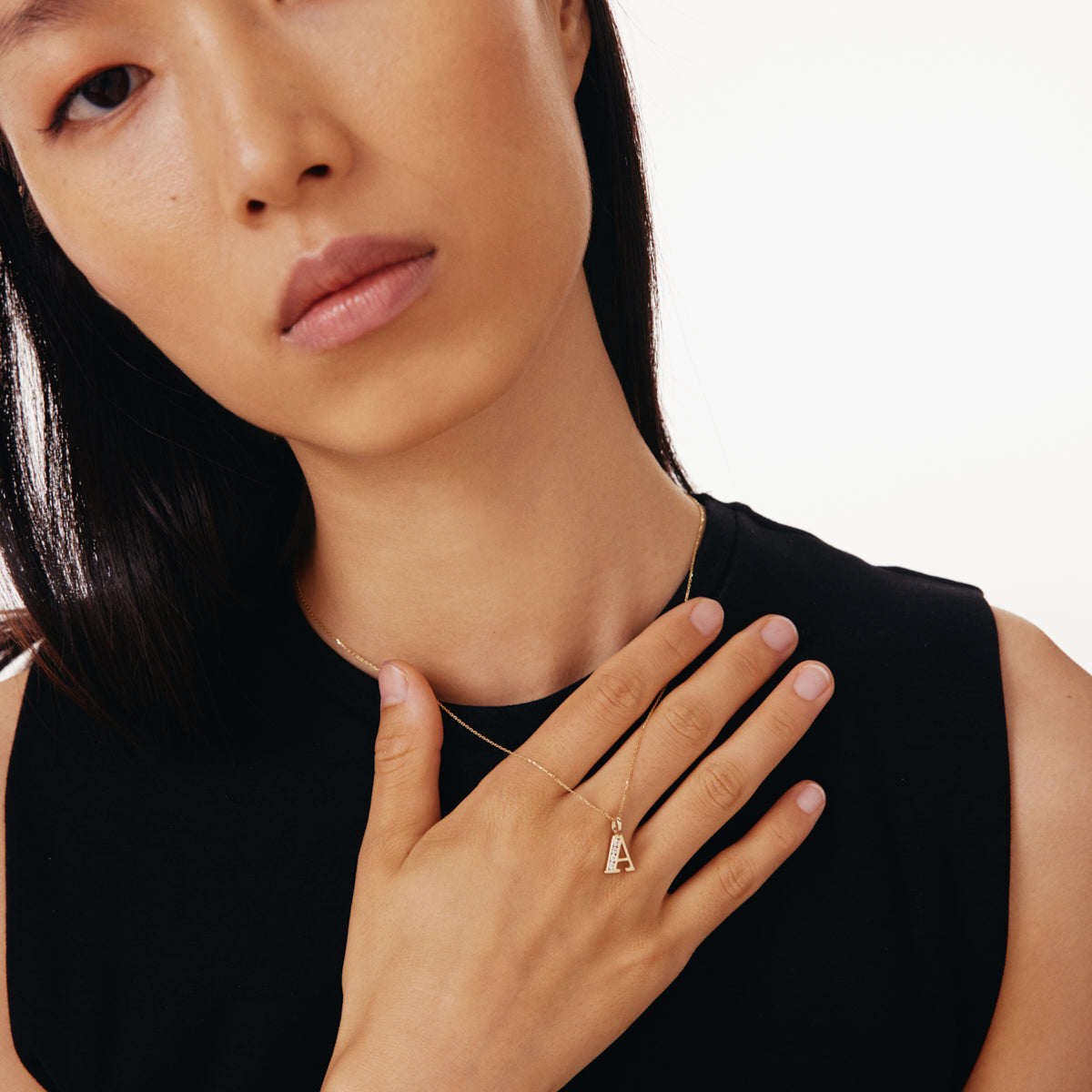 Custom CZ Initial Anhänger Halskette 375er Gold