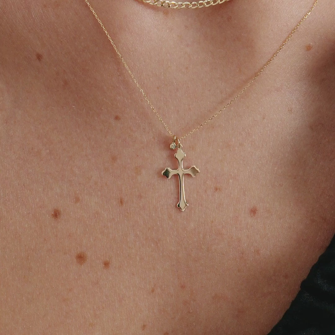 Collier croix serti de diamants en or massif 585